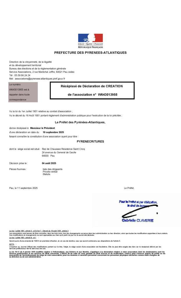 CRÉATION ASSOCIATION PYRENECRITURES